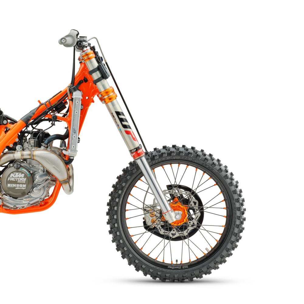 WP XACT PRO 7548 FORK: The 48 mm WP XACT PRO 7548 fork, fitted as standard, represents the pinnacle of motocross suspension -- adding a new layer of performance and adjustability. More than just suspension, it's a secret weapon for faster lap times and total confidence in every section of the track. It delivers unrivaled comfort, pinpoint response, and rock-solid bottoming resistance to the MY26 FACTORY EDITIONS. The XACT PRO 7548's unique valve system and friction-optimized components work in harmony to absorb harsh landings without compromising support, delivering consistent damping lap after lap and instilling rider confidence in all track conditions.