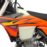 Fuel Tank: The transparent, polythene (XPE) fuel tank is a signature element of the KTM Enduro lineup. Having undergone thorough race testing in everything from the GNCC to the hardest of FIM hard enduros, these tanks are built, well, like tanks! A one-piece fuel pump and filter manage fuel supply, while servicing is made extra simple with easy fuel filter access. What's more, an updated fuel tank roll now holds the tank more firmly in place and protects the frame against scrubbing: