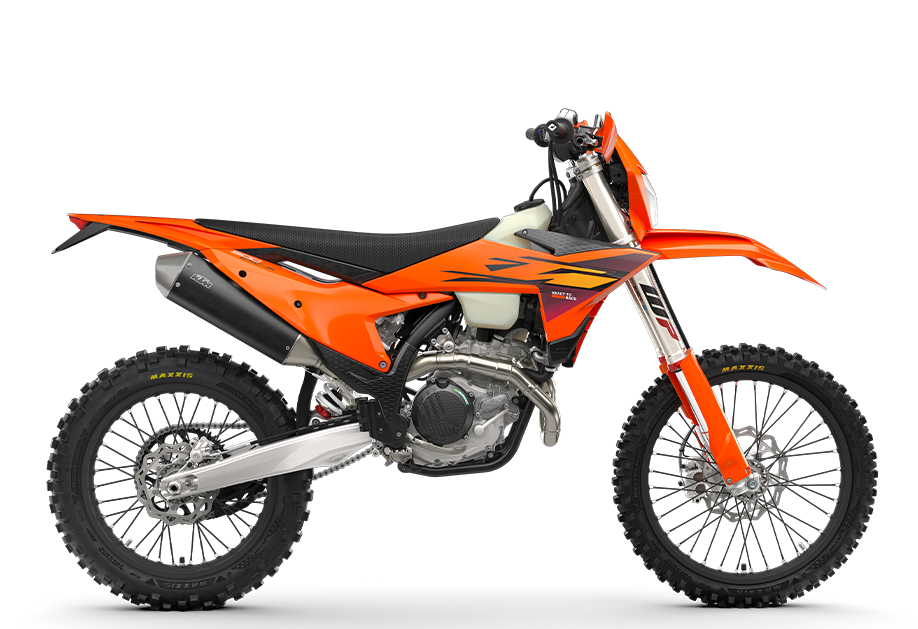 Heading off to explore an abandoned town? Done. Churning dirt in a forest? Easy. Charging through the deep sandy deserts? Let's go! The KTM 500 EXC-F doesn't shy away from anything. Churning out hp, and built around a lightweight frame with best-in-class suspension, this large-displacement powerhouse is surprisingly usable, making the KTM 500 EXC-F the ultimate half-liter weapon in anyone's Enduro arsenal.