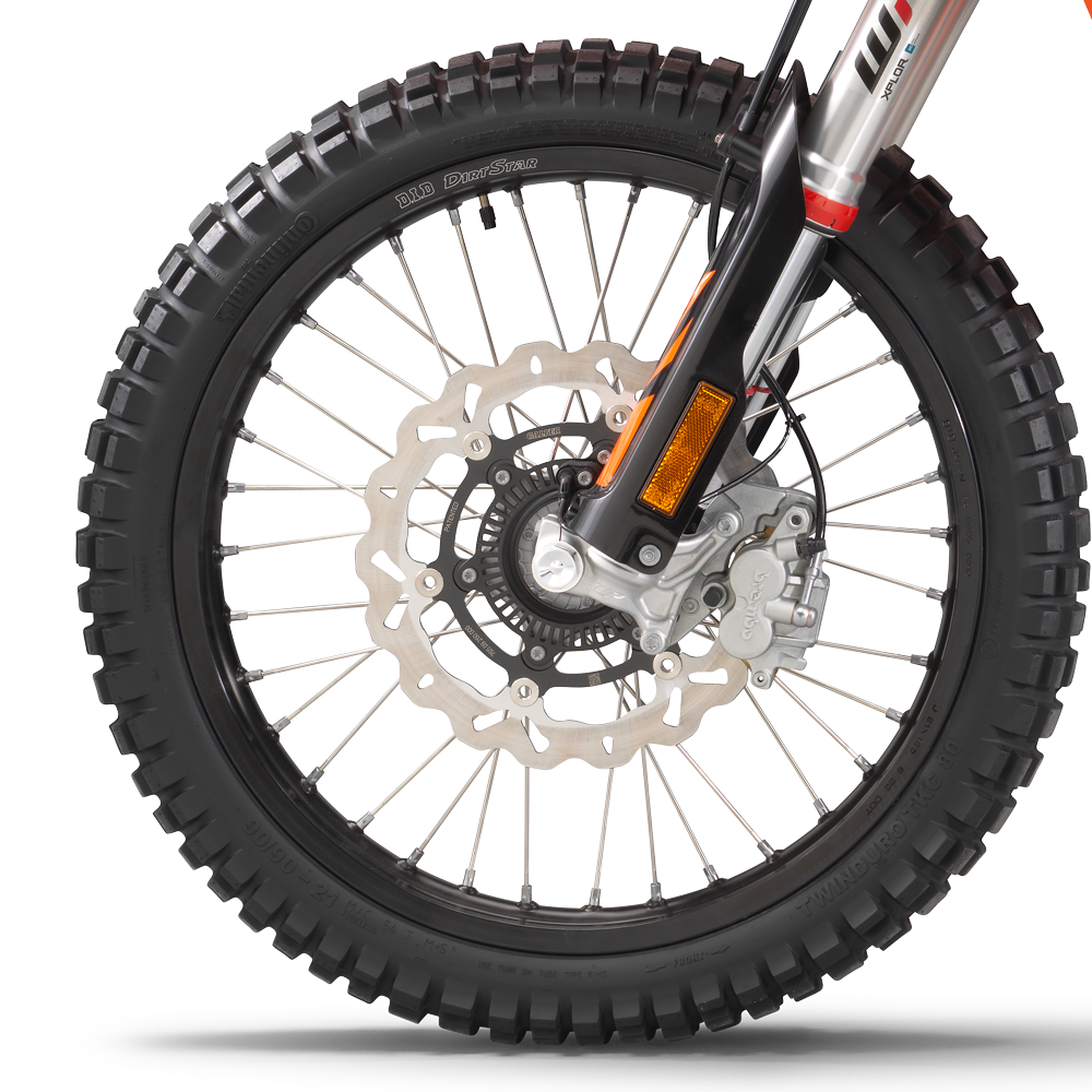 Rear Shock: The WP XPLOR shock absorber is connected to the swingarm by a linkage. This ensures a progressive suspension character and a high resistance to bottoming out. Fully adjustable, including high and low-speed compression, you can set up the shock absorber to any circumstances and rider preference.