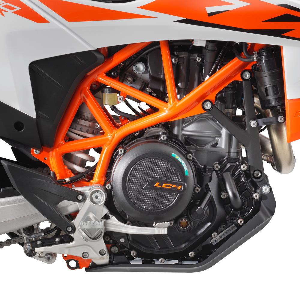 Engine: Welcome to the next generation of the legendary KTM LC4 single-cylinder powerhouse! Still as bulletproof and hard-hitting as ever, but updated with new Clutch and Stator covers, crankcase, an improved oil delivery system, and - most importantly - more performance.