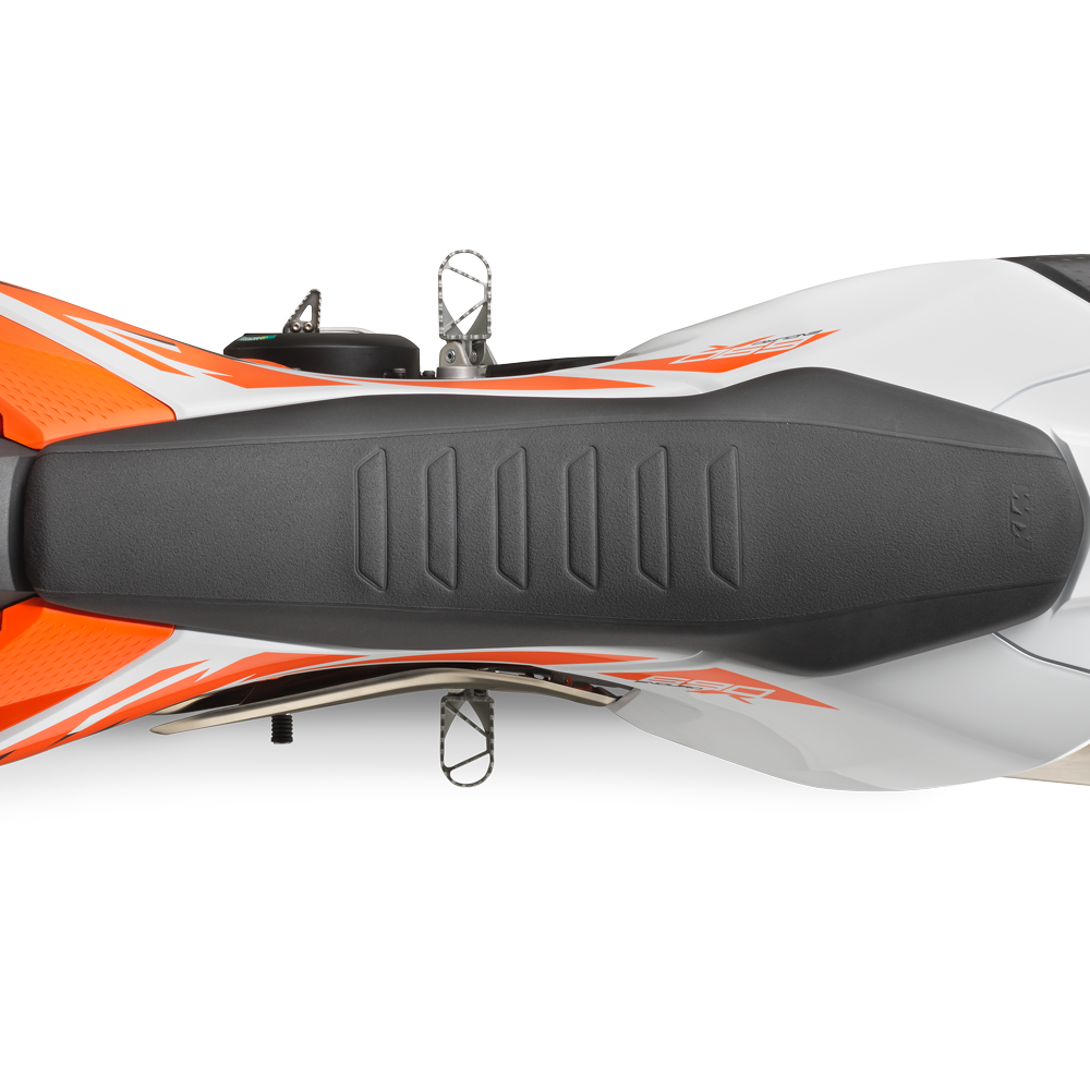Seat: The KTM 690 ENDURO R seat does three things. Firstly, it allows fluid rider motion when shredding offroad, thanks to its ergonomic shape and 36.8 in (935 mm) seat height. Secondly, it provides good comfort when you need to cover the ground between trails.