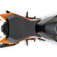 Seat: Take one look at the KTM 990 DUKE R and its purpose is evident. This single-seater is built to race and although it can carry pillions, the objective is performance-first. While the base seating character remains unchanged, it does stand at 840 mm (up from 825 mm) due to its upgraded suspension. Agility is key, without sacrificing what you'd expect form it on the road.