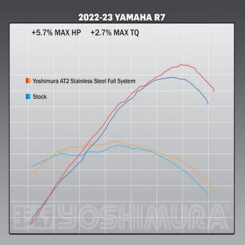 When it came to crafting a special race exhaust for the Yamaha R7, we pulled out all the stops. Modeled after the titanium version, tHis Works Finish stainless system is the perfect balance between performance and value. Created with premium alloy material, then prototype after prototype until we reached the final test system. On a stock engine with no mods and 91 octane pump fuel, this new system creates +5.7% max HP and +2.7% max torque. This system is designed to create even more performance with motor work and our airbox so the gains we publish are just the start of a powerful package.