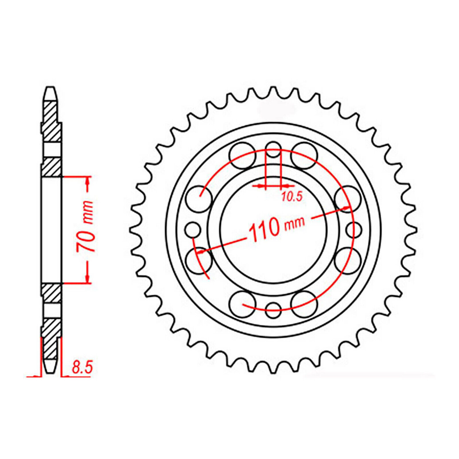 MTX OE Steel sprockets are strong and durable heat-treated and hand-finished for longevity. Front sprockets are constructed from SCM420 chromoly steel alloy where rear sprockets are constructed from C45 high carbon steel with a Zinc electroplated finish. Designed as an OEM replacement to exceed OEM specifications at a fraction of the price making them your ideal cost-effective solution for replacing old worn and warped sprockets.