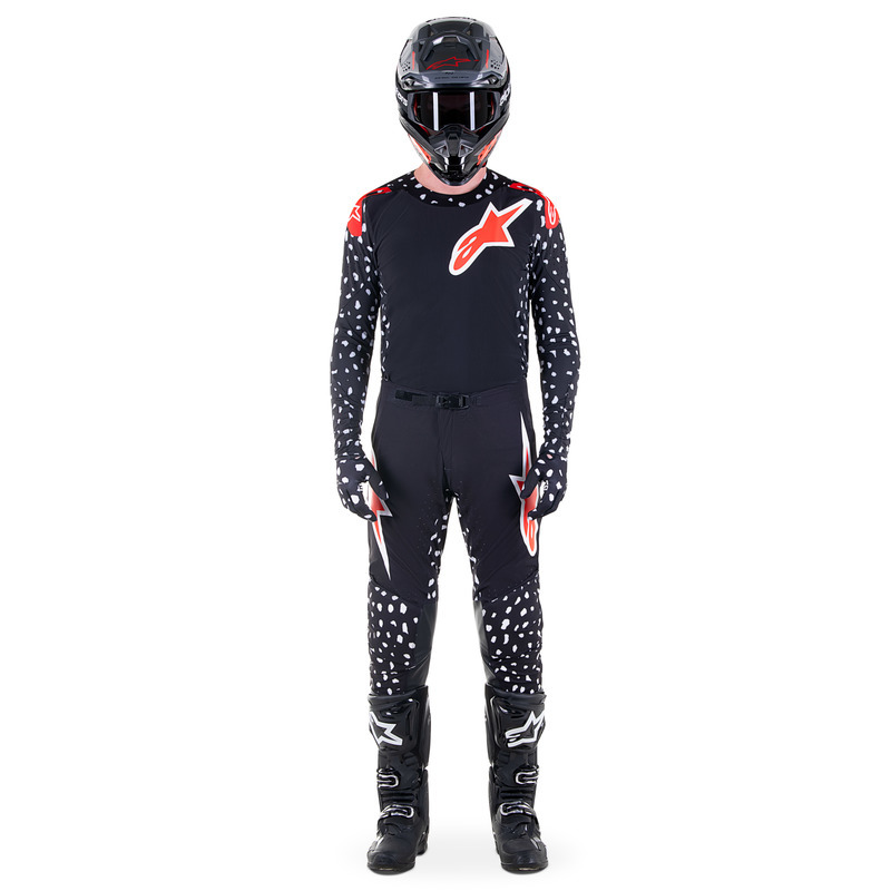 Supertech is Alpinestars innovative Pro Level Motocross apparel line, designed for superior dirt riding performance. With an engineered design for an athletic ‘race’ fit, a chassis consisting entirely of advanced stretch mesh and an ultra-lightweight construction, the Supertech Jersey is Alpinestars lightest ever MX jersey. Featuring a host of SX and MXGP race-proven technologies, the Supertech Jersey delivers optimum levels of flexibility, freedom of movement, ventilation, durability and comfort.