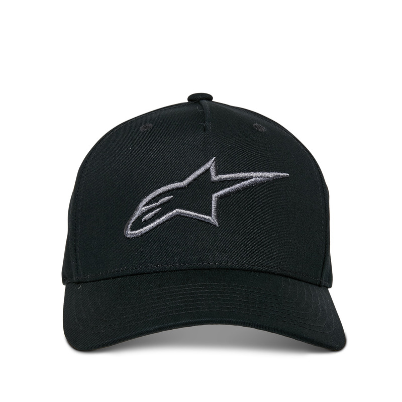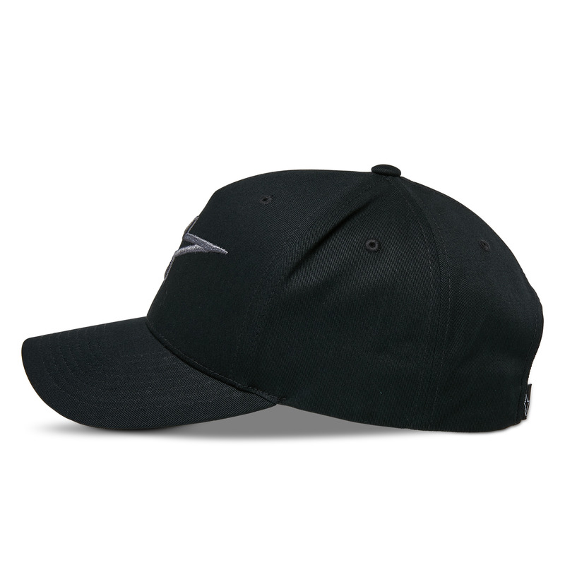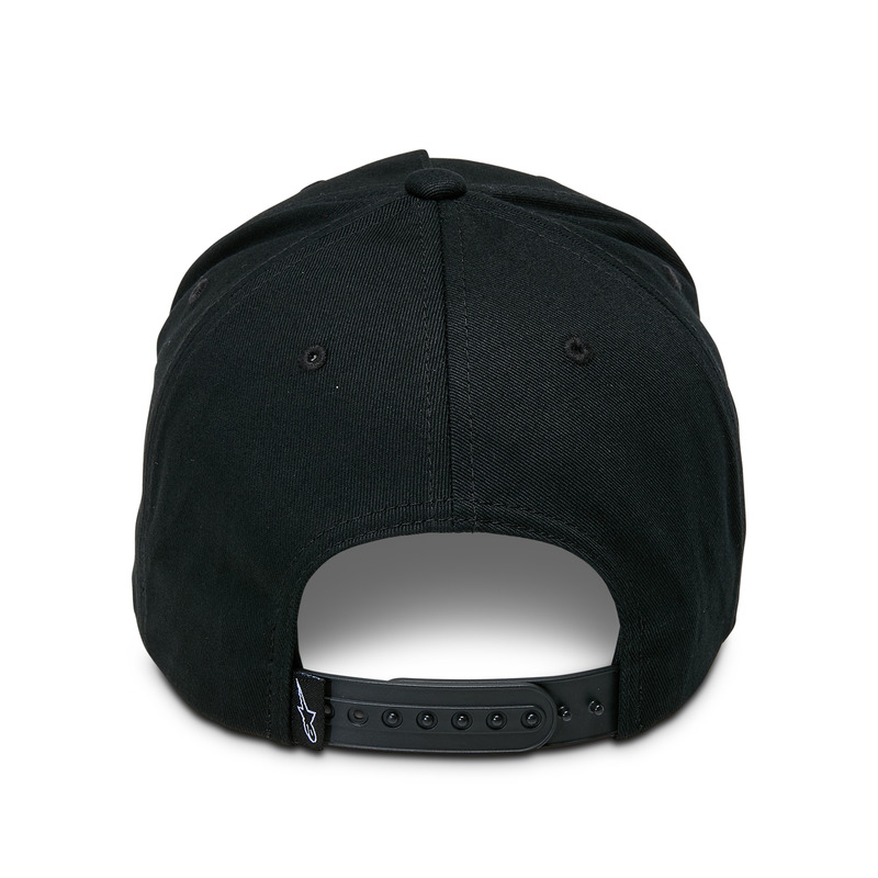 Classic cotton twill snap-back cap with 3D embroidery and curved bill.