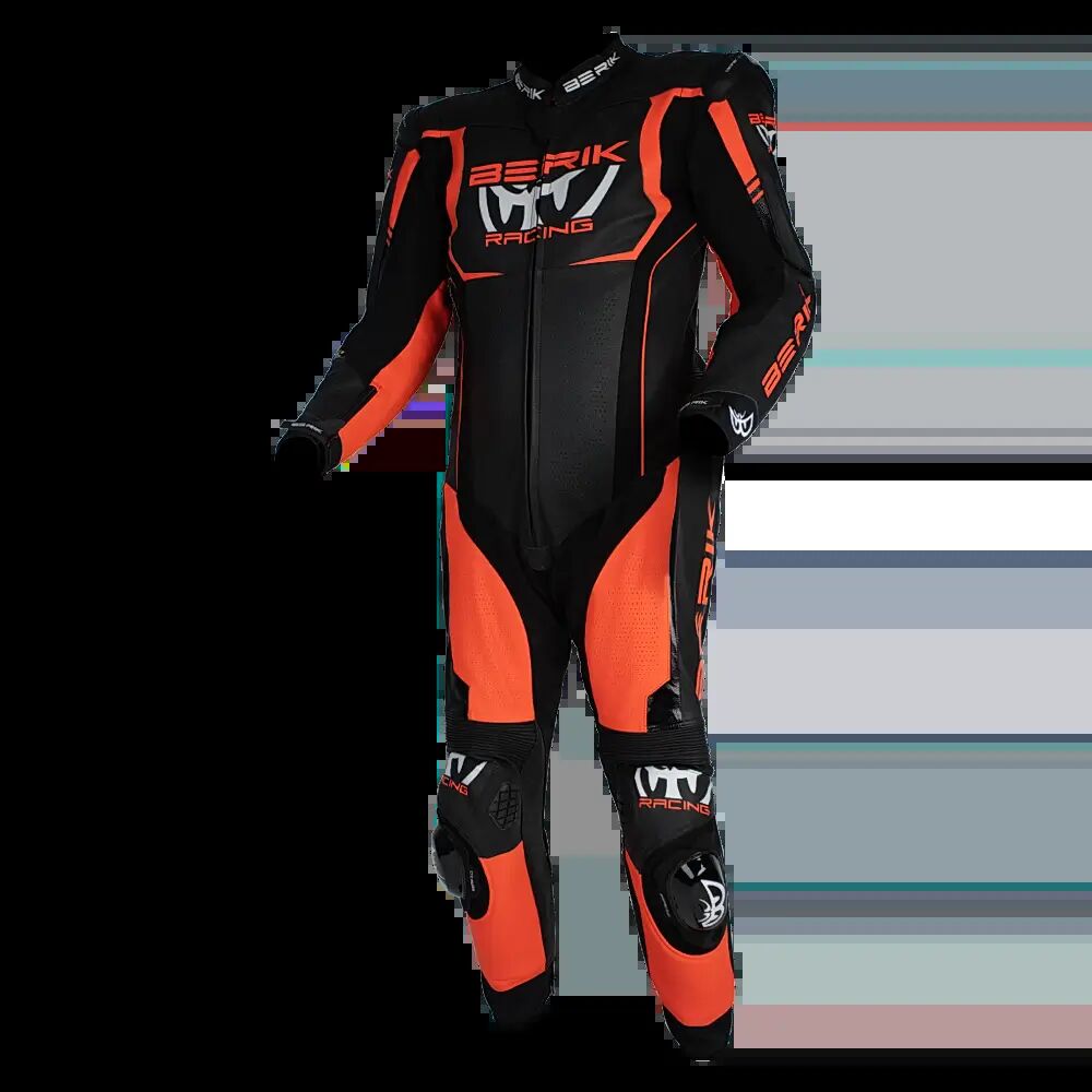 Ultimate Protection & Performance Engineered for performance, the Berik MUGELLO One-Piece Motorcycle Leather Suit combines cutting-edge protection with unmatched comfort. Built for riders who push their limits, this suit features TENSE-TEX Stretch material, strategically placed on the arms and back of the knees, to provide exceptional flexibility and freedom of movement, no matter how intense the ride. Designed with an aerodynamic hump, it optimizes your riding position for improved aerodynamics, helping you stay smooth and fast on the track. Perforated leather inserts enhance airflow for superior ventilation, while reinforced leather on the shoulders, elbows, and seat ensures you stay protected where it matters most. Polychloroprene material on the wrist and neck enhances overall comfort, offering a secure fit without sacrificing mobility. Whether you’re racing, carving through corners, or simply craving a smooth ride, the Berik MUGELLO Leather Suit is the perfect choice for the sport rider who demands both performance and protection.