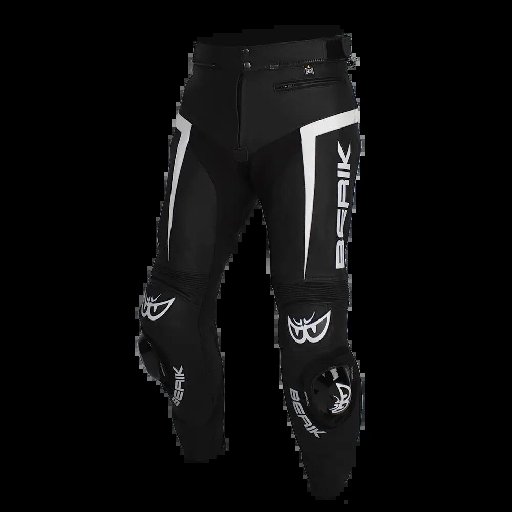Introducing the SPORT BLACK Leather Pants. Performance and Protection for Every Ride. The SPORT BLACK leather pants are the perfect match for any Berik leather jacket, allowing you to complete your riding look with ease. Built for serious riders, these pants are designed to take you from your Sunday mountain ride to track days, ensuring you’re covered for every adventure. Crafted from high-quality Italian cowhide leather, these pants offer exceptional durability and flexibility. The TENSE TEX stretch inserts enhance comfort and mobility, while providing superior impact resistance. Engineered for performance, they combine an ergonomic fit with advanced safety features to deliver the ultimate balance of style, function, and protection. Whether you’re pushing your limits on the track or enjoying a scenic ride, the SPORT BLACK leather pants are your go-to gear for comfort, safety, and performance.