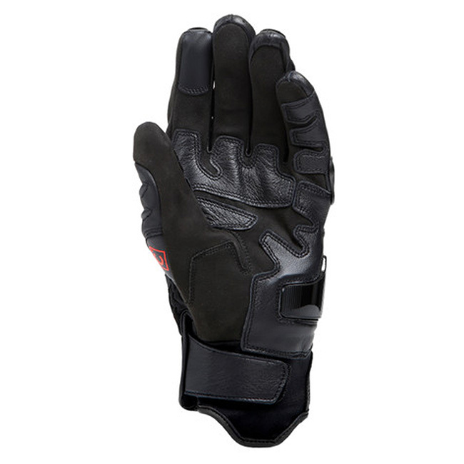 The Dainese Carbon 4 short motorcycle gloves are a sport model that combines comfort, coolness, and ventilation deriving from the mesh inserts on the back, top safety standards guaranteed by the DCP protection system on the little finger, the strength of the leather, and the protection provided by carbon knuckles, designed for optimal ergonomic performance and comfort of fit.