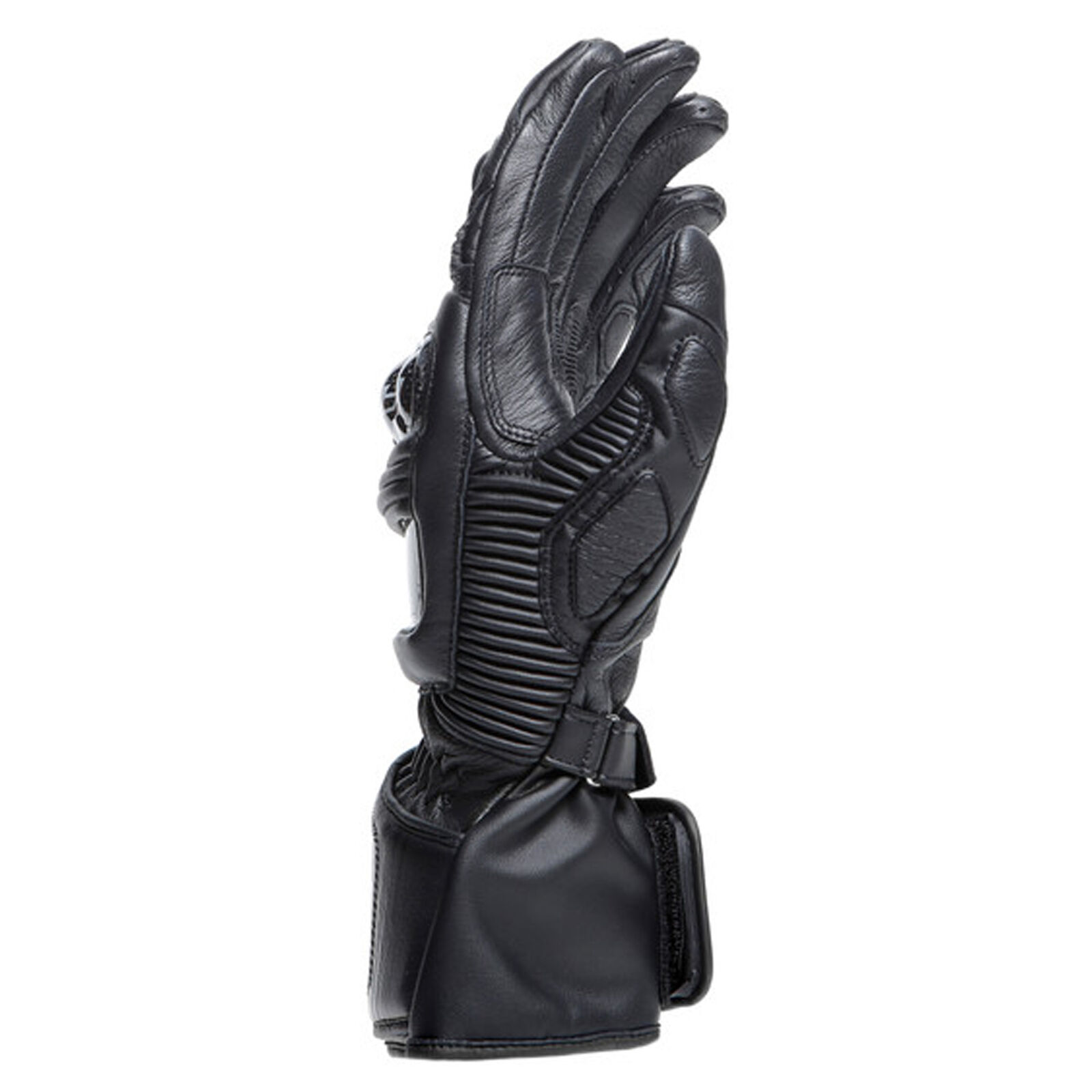The Dainese Druid 4 leather racing gloves are an expression of the highest protection standards, designed for maximum performance on the track and the road. World Championship safety and ergonomics are guaranteed by the presence of the pre-curved and thermoformed sleeve, the carbon inserts on the knuckles and back, and the thermoplastic protector on the little finger. They are guaranteed to be resistant owing to the polyurethane inserts on the palm and joints, while four-way stretch ensures extreme comfort and a perfect fit at all times.