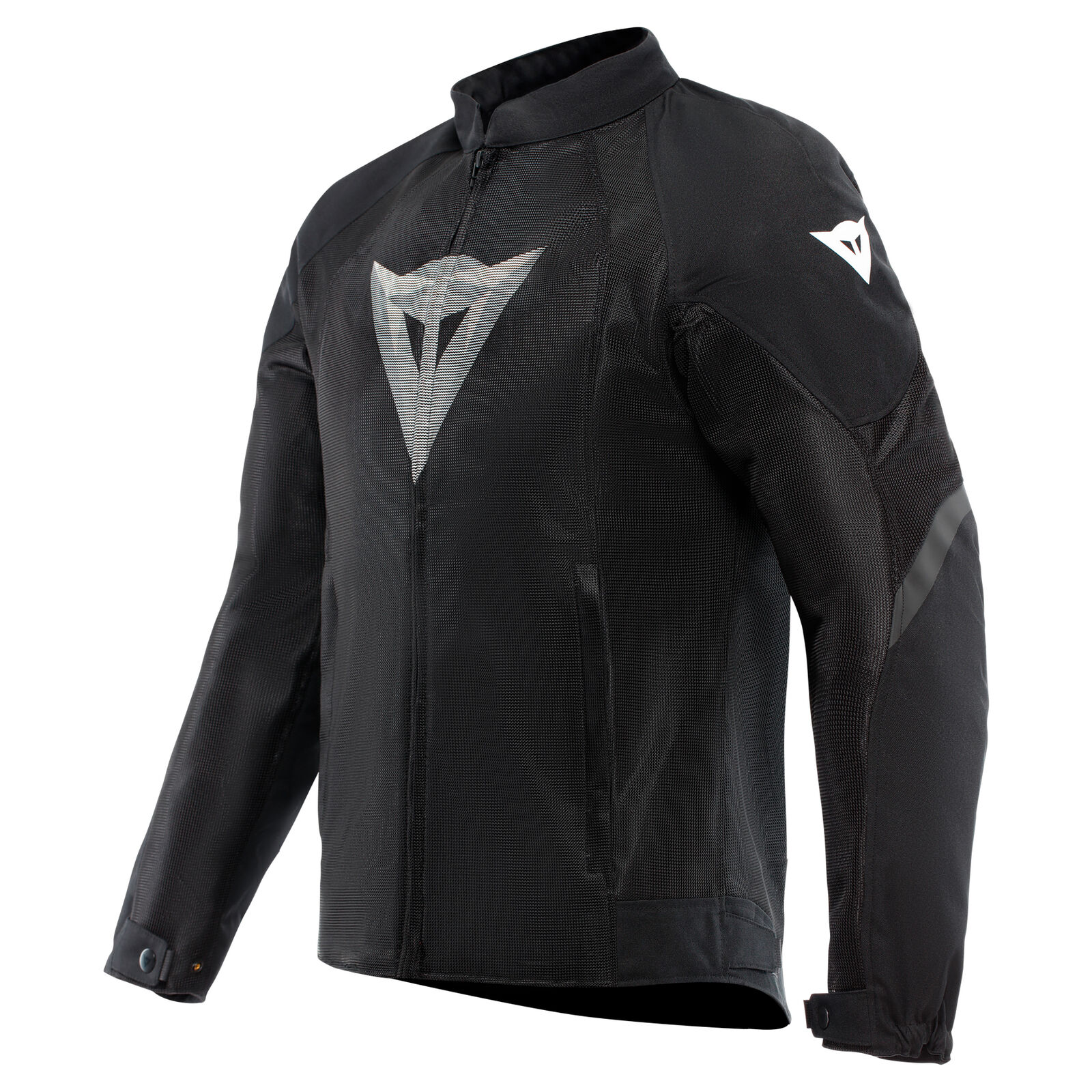 Certified motorcycle jacket featuring soft Pro-Armor protectors on shoulders and elbows and pockets designed to accommodate chest and back protectors. Maximum ventilation and lightness even at high temperatures. Ergonomic and functional, this garment integrates a jacket-to-pants connection system and a waterproof internal pocket.