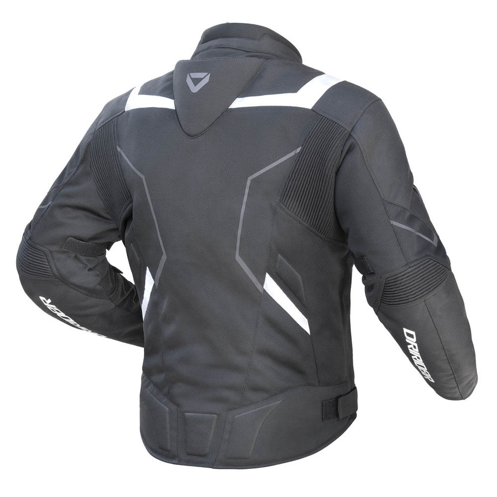 CE rated Level 2 shoulder and elbow armour will effectively mitigate impacts on your limbs, while the high-density foam back pad will help reduce spinal injuries; this back armour can be upgraded to Level 2 armour for maximum protection. A mini air hump at the base of the neck helps with aerodynamics as well as cushions any blows to that area. Reflective printing on the jacket helps with nighttime visibility amongst other drivers.