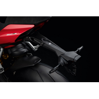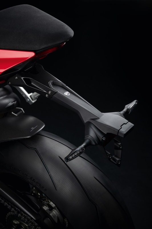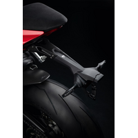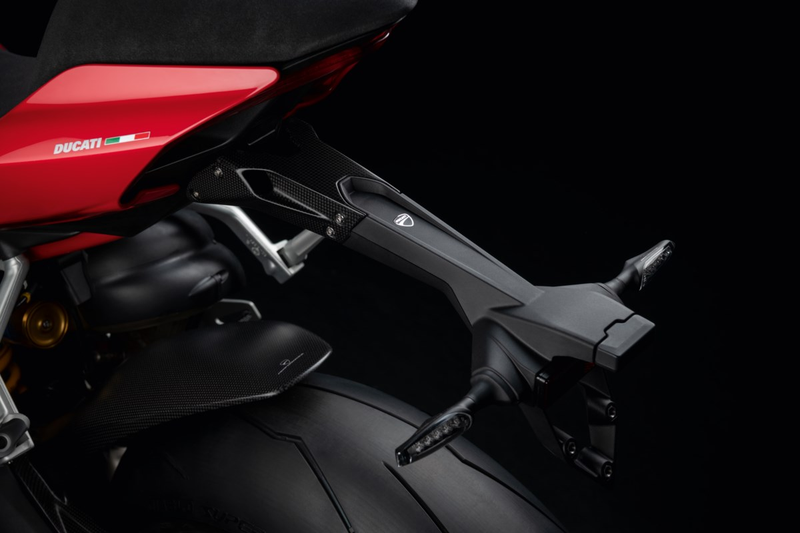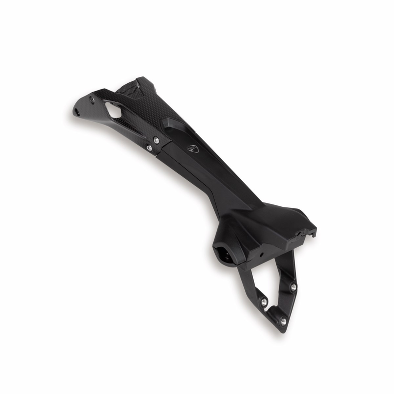 It adds an assertive style to the rear end of the Panigale. The carbon fibre and the shorter line enhance the look of the bike compared to the standard version. Practical and quick to disassemble if used on the track. It allows for a safe and hidden housing for cables.