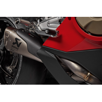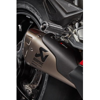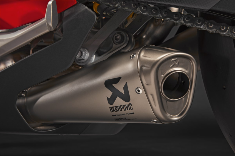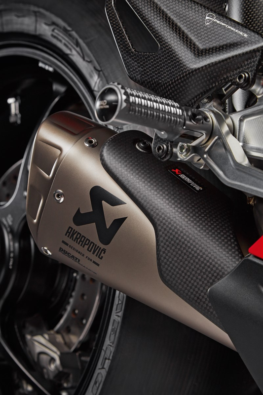 From the manufacturing expertise of Akrapovič, the most advanced complete racing system available on the market, developed by Ducati Corse technicians based on the exhaust mounted on the Panigale V4 R bikes used in the World Superbike Championship. Each part of this system is made from a special titanium alloy ensuring not only considerably lower weight, but also great resistance to the high temperatures that can be reached. The exhaust system significantly improves the already high weight/power ratio of the Panigale V4 bike. Equipped with a racing-derived polyester air filter that, besides being more permeable, guarantees excellent filtering power and easy maintenance. Top performance not just thanks to the racing materials but also the map supplied, which adapts all the parameters of DTC - DWC - DPL and DSC to the bike's new performance. The racing exhaust system enhances the unmistakable look of the Panigale V4, giving it an additional touch of aggressiveness. A true race-replica also for the typical sound.