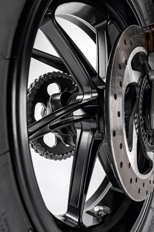 An accessory designed to maximise the performance and lightness of the bike for road use. The special production technique, in which a block of molten metal is pressed into a mould and countermould system, ensures less porosity and thus greater strength than cast rims.