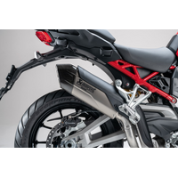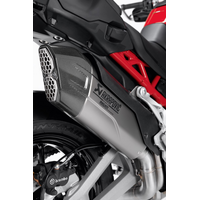An exclusive accessory made by Akrapovič and equipped with a titanium-lined silencer and carbon endcap, for an exceptionally lightweight design. Typical racing materials are combined with the supplied map, which adapts all the parameters of DTC - DWC - DPL and DSC to the bike's new performance, increasing its torque and maximum power. Boasting a touch of sportiness with a racing style, it’s the perfect exhaust for bringing out all the Multistrada’s character with maximum performance.