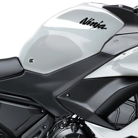 Eazi-Grip PRO - the non-abrasive high performance tank grips Kawasaki Ninja 650 / Z650 PRO Tank Grips includes Tank Grips, left and right side, clear IPA cleaner Fitting Instructions Manufactured in the UK from high quality polyurethane, these traction pads are designed to be applied to the fuel tank recesses next to the riders knees and come pre-cut to size. High quality polyurethane with low profile, circular embossed surface Provides outstanding feel and movement but with superior grip when needed Suitable for race, track days and more enthusiastic road riders Non-abrasive - kind to riders leathers Cut to size - quick and easy to apply - instructions and IPA surface cleaner provided Road and track use only - not suitable for off-road use Application Peel back part of the release liner then press the tank grip firmly onto the tank and slowly peel back the liner whilst applying the grip. Push down the surface and take care not to trap air bubbles as you go. Allow 48 hours for the adhesive to fully bond before using the grips. Use an IPA cleaner to prepare surface area NO methylated spirits/petrol/lighter fluid etc. as these leave behind a thin, greasy residue. For best results ensure prepared surface is above 10oC. Also available from our store - Eazi-Grip EVO Tank Grips Eazi-Grip EVO tank grips have a soft but durable domed surface that is very easy to grip, giving the rider increased control with minimal effort, thereby reducing fatigue and and reducing wear to the riders leathers or clothing. Eazi-Grip EVO Tank Grips tend to suit the less aggressive rider (primarily road and occassional track use) and are a great alternative to more abrasive, higher priced tank grips available on the market. Designed, developed and manufactured in the U.K. Hint: Black grips look better than clear on a black tank, where clear grips can appear a little blue. Black grips can also look better than clear on a pure white tank, where clear grips can appear a little yellow. Clear grips are optimised for colours other than black and pure white. NB. Clear grips are supplied with a pink-coloured adhesive liner which makes the grips appear pink until the liner is removed. Suitable for Kawasaki Ninja 650 / Z650 2017 - current models only Part No. PRO426CLDetails about our showrooms & trading hours are available on our 'Contact Us' page.