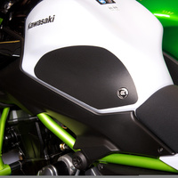 Eazi-Grip PRO - the non-abrasive high performance tank grips Kawasaki Ninja 650 / Z650 PRO Tank Grips includes Tank Grips, left and right side, black IPA cleaner Fitting Instructions Manufactured in the UK from high quality polyurethane, these traction pads are designed to be applied to the fuel tank recesses next to the riders knees and come pre-cut to size. High quality polyurethane with low profile, circular embossed surface Provides outstanding feel and movement but with superior grip when needed Suitable for race, track days and more enthusiastic road riders Non-abrasive - kind to riders leathers Cut to size - quick and easy to apply - instructions and IPA surface cleaner provided Road and track use only - not suitable for off-road use Application Peel back part of the release liner then press the tank grip firmly onto the tank and slowly peel back the liner whilst applying the grip. Push down the surface and take care not to trap air bubbles as you go. Allow 48 hours for the adhesive to fully bond before using the grips. Use an IPA cleaner to prepare surface area NO methylated spirits/petrol/lighter fluid etc. as these leave behind a thin, greasy residue. For best results ensure prepared surface is above 10oC. Also available from our store - Eazi-Grip EVO Tank Grips Eazi-Grip EVO tank grips have a soft but durable domed surface that is very easy to grip, giving the rider increased control with minimal effort, thereby reducing fatigue and and reducing wear to the riders leathers or clothing. Eazi-Grip EVO Tank Grips tend to suit the less aggressive rider (primarily road and occassional track use) and are a great alternative to more abrasive, higher priced tank grips available on the market. Designed, developed and manufactured in the U.K. Hint: Black grips look better than clear on a black tank, where clear grips can appear a little blue. Black grips can also look better than clear on a pure white tank, where clear grips can appear a little yellow. Clear grips are optimised for colours other than black and pure white. Suitable for Kawasaki Ninja 650 / Z650 2017 - current models only Part No. PRO426BLDetails about our showrooms & trading hours are available on our 'Contact Us' page.