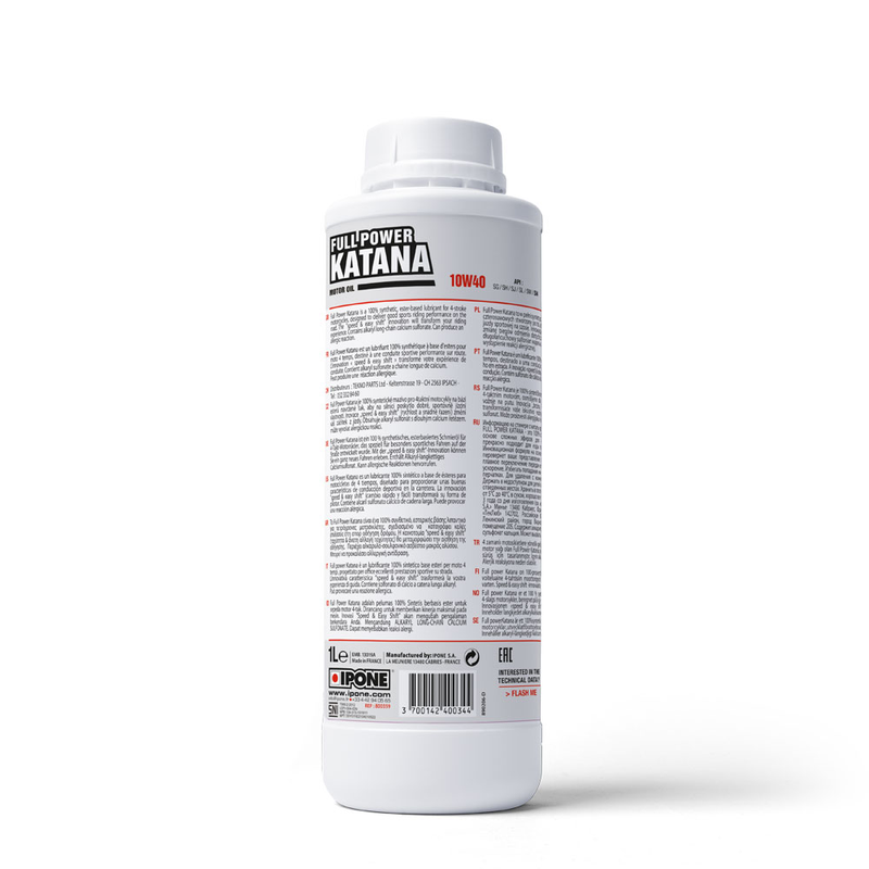 FULL POWER KATANA is a 100% synthetic ester-based and high-performance motor oil for 4 Stroke motorcycles, intended for sporty riding on the road.