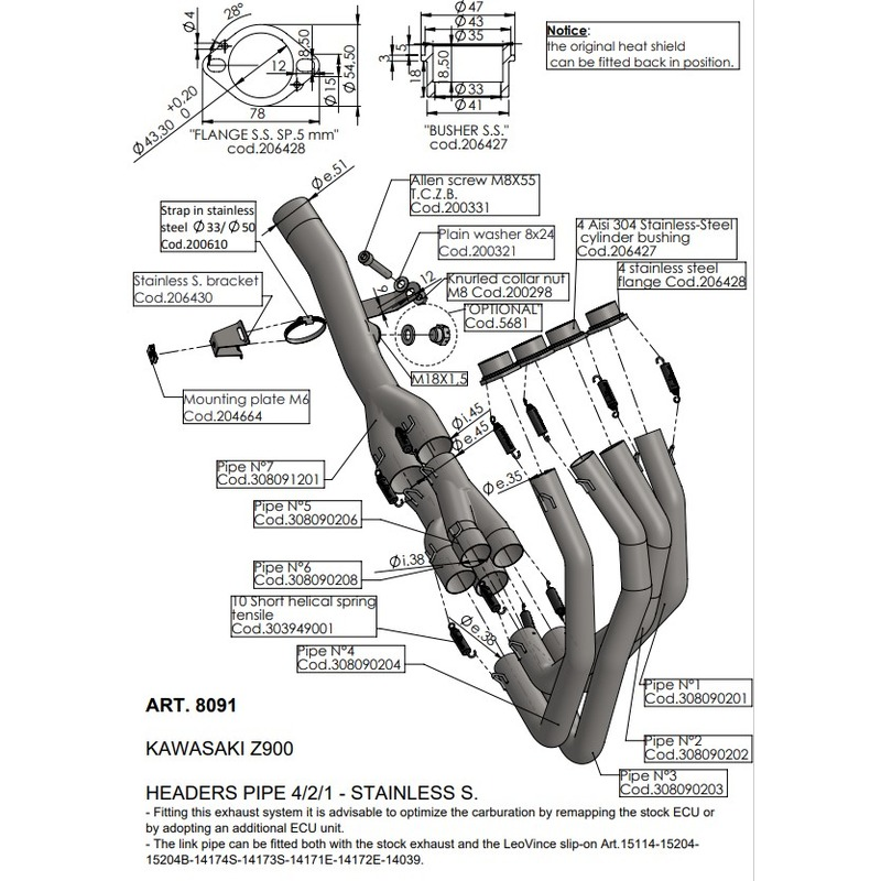 LV HEAD PIPES | STAINLESS | Z 900 17>21