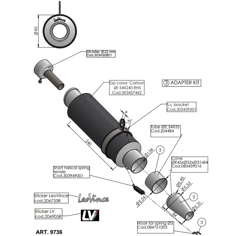 LV UNI MUFFLER KIT | GP CORSA | CARBON FIBRE | ?54mm.