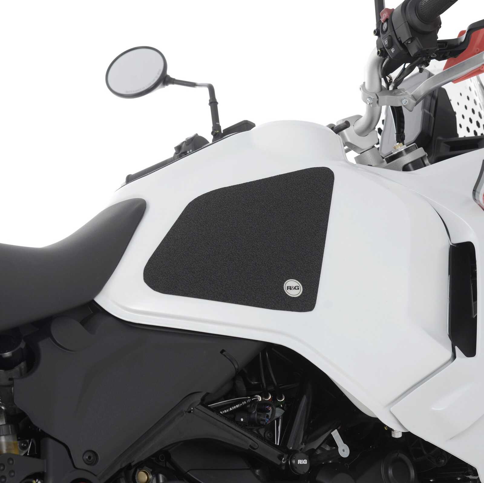 This 2-piece R&G Tank Traction Grip kit has been specially designed for the Ducati DesertX '22- models.
