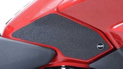 R&G Tank Traction Grip kits are available for many different bike styles and brands, with new applications released regularly. The unique R&G Traction Grip texture was specifically designed to be both soft and durable, providing the rider with the grip and feel he/she needs to assist in better bike control, enabling the rider to maintain a stable body position while cornering and braking, whilst also relieving fatigue and providing the rider with complete confidence allowing him/her to fully focus on the road (or track) ahead instead of slipping and sliding on the tank. Each Tank Traction Grip kit is supplied with precision pre-cut adhesive pieces, designed to fit the intended bike, typically in either 2, 4 or 6 pieces (in total) depending on the shape of the tank and adjoining fairing. The high-strength adhesive backing ensures a highly durable product that will stay exactly where you put it, as well as not affecting or damaging paintwork. Each R&G Tank Traction Grip kit is available in black and ultra-clear finishes to blend into your bike's paintwork or stand out, depending on your preference. R&G Tank Traction Grips work in both wet and dry conditions and is equally at home on the track as it is on the commute home! Please note: R&G Tank Traction Grips now come with a 25mm diameter stick on emblem. This 2 piece R&G Tank Traction Grip kit has been specially designed for the Honda Crossrunner 2015- models. Made in the UK.