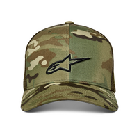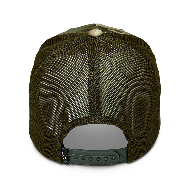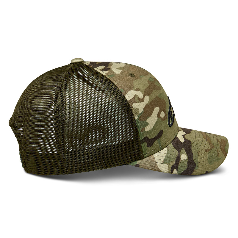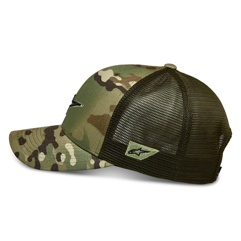 Camo twill snap-back cap with mesh back and 3D Astars logo embroidery.
