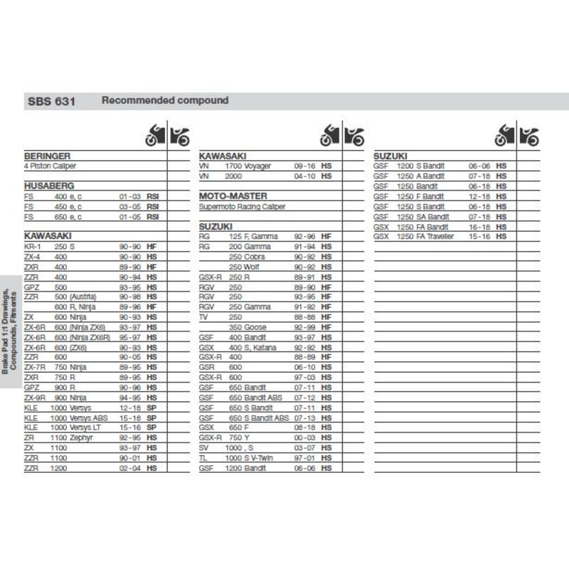 SBS 631SP FRONT PADS | EVO SINTER STREET