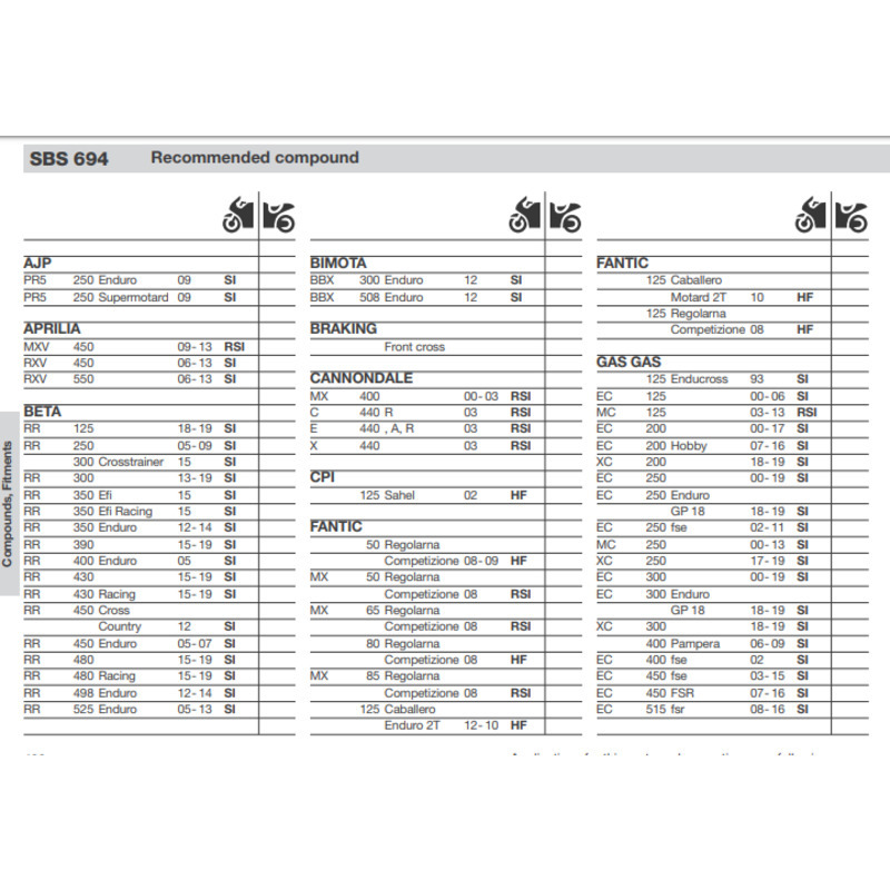 SBS 694RSI FRONT/REAR PADS | SINTER OFFROAD RACE