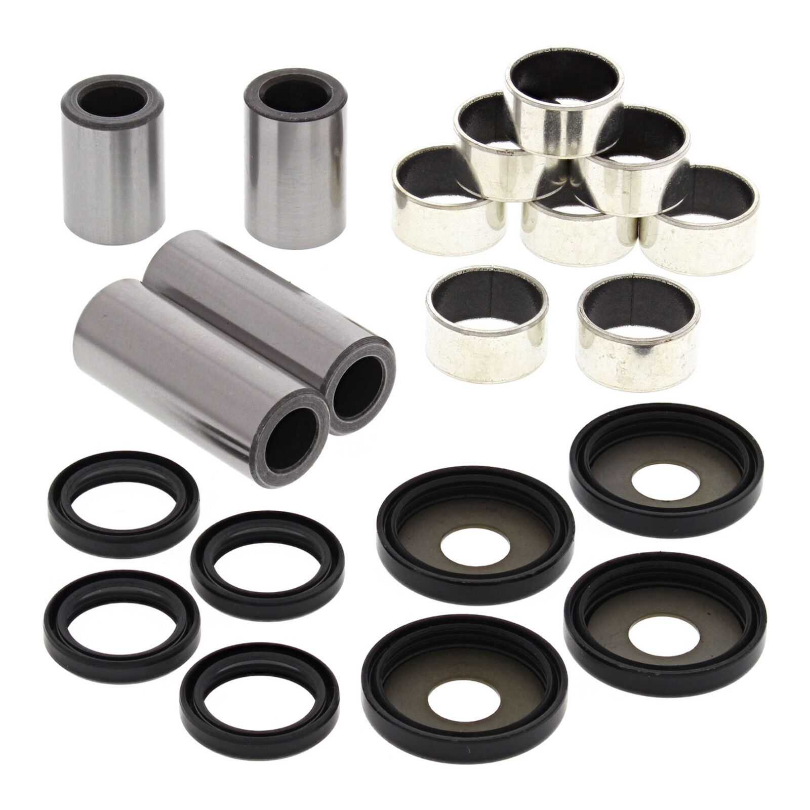 A Quality Suspension Linkage Kit from All Balls Racing. Kit includes lower shock bearing kit! Needle Bearings are made from 52100 bearing steel ARC61-65 heat treated ST13 steel shell. Bushings are case hardened and plated to prevent wear and corrosion. Shafts are made from 52100 Bearing steel through hardened and precision ground.