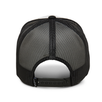 This curved bill trucker cap features a structured crown and classic snap-back closure for an adjustable, secure fit. The front panel is made from durable twill, while the mesh back provides breathability and comfort in warm conditions. A bold embroidered logo adds standout branding, complemented by internal and back label detailing. Designed for everyday wear with a modern, street-ready edge.