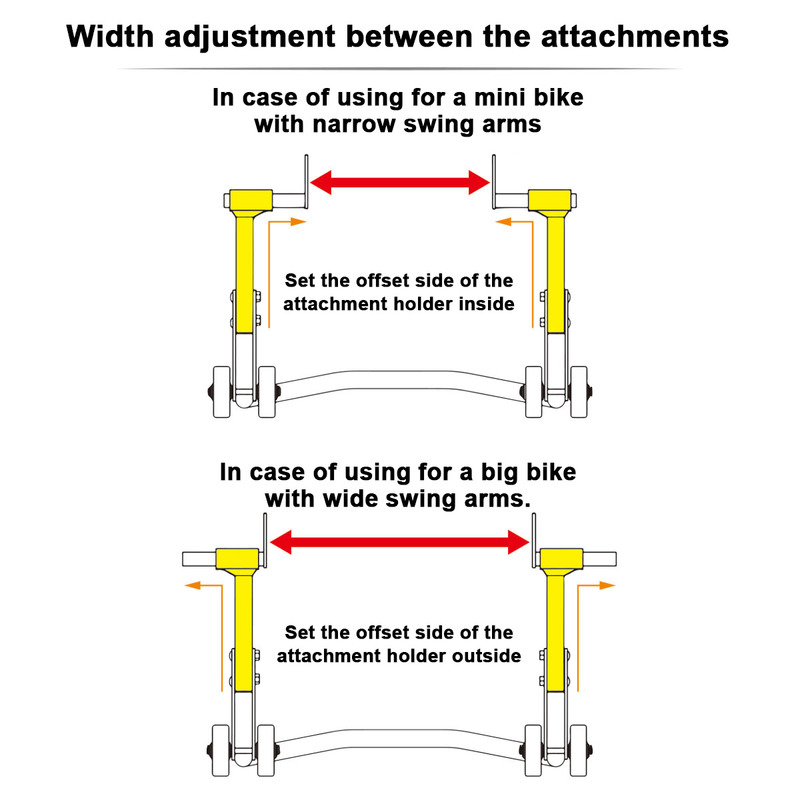 * Cannot be used for motorcycles with different swing arm heights on the left and right, or with a one-sided swing arm.