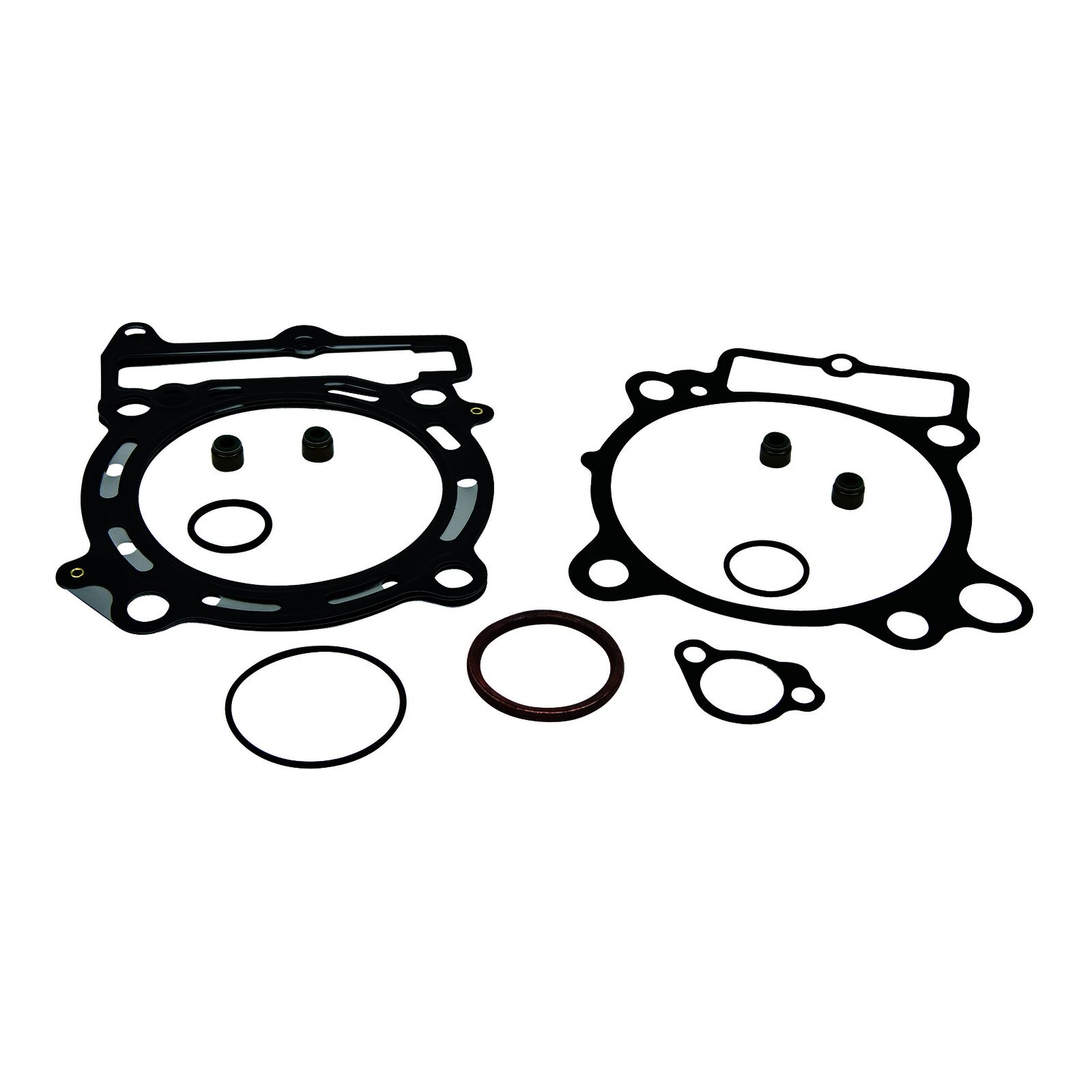 • These sets include the head base and exhaust gaskets valve seals O-rings and other gaskets to complete a top-end rebuild.