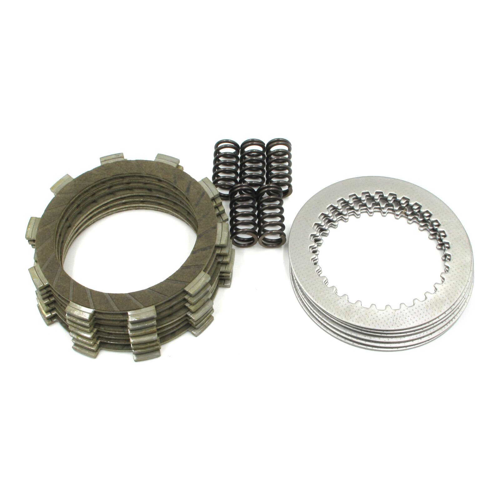 Whites Complete Clutch Kits contain a complete pack of friction plates and clutch springs for your motorcycle or ATV. The Whites Complete Clutch Kit is the easiest and best replacement for your clutch. The kit has complete compatibility with your OEM clutch components. Quality drive and friction plates are made with precision to ensure tight tolerances in the clutch basket and inner hub. Quality cork-based friction plates offer a great feel and strong engagement.