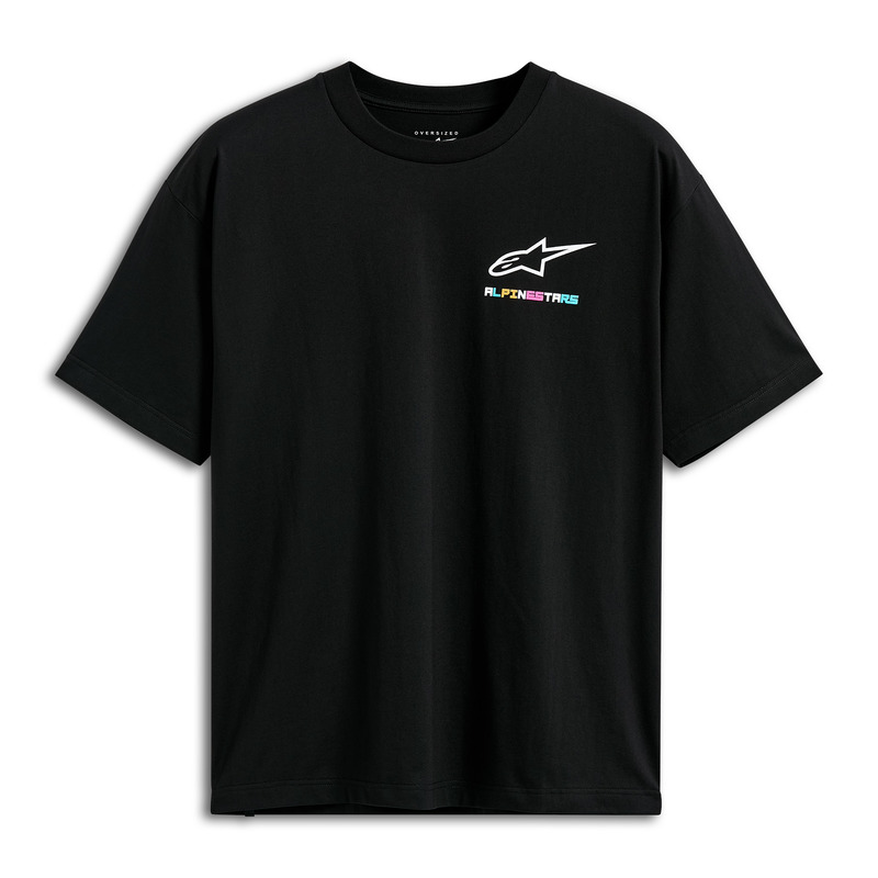 Oversized tee with vibrant multi-color Astars logos on front and back, featuring soft hand print.