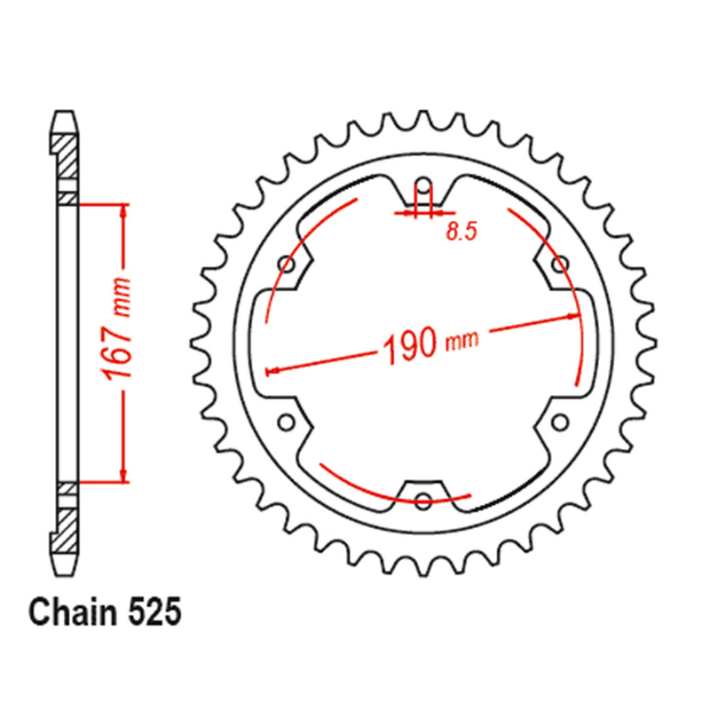 50 Teeth, Rear Steel Sprocket. Suit 525 Pitch Chain. Precision machined for enhanced power delivery and efficiency.