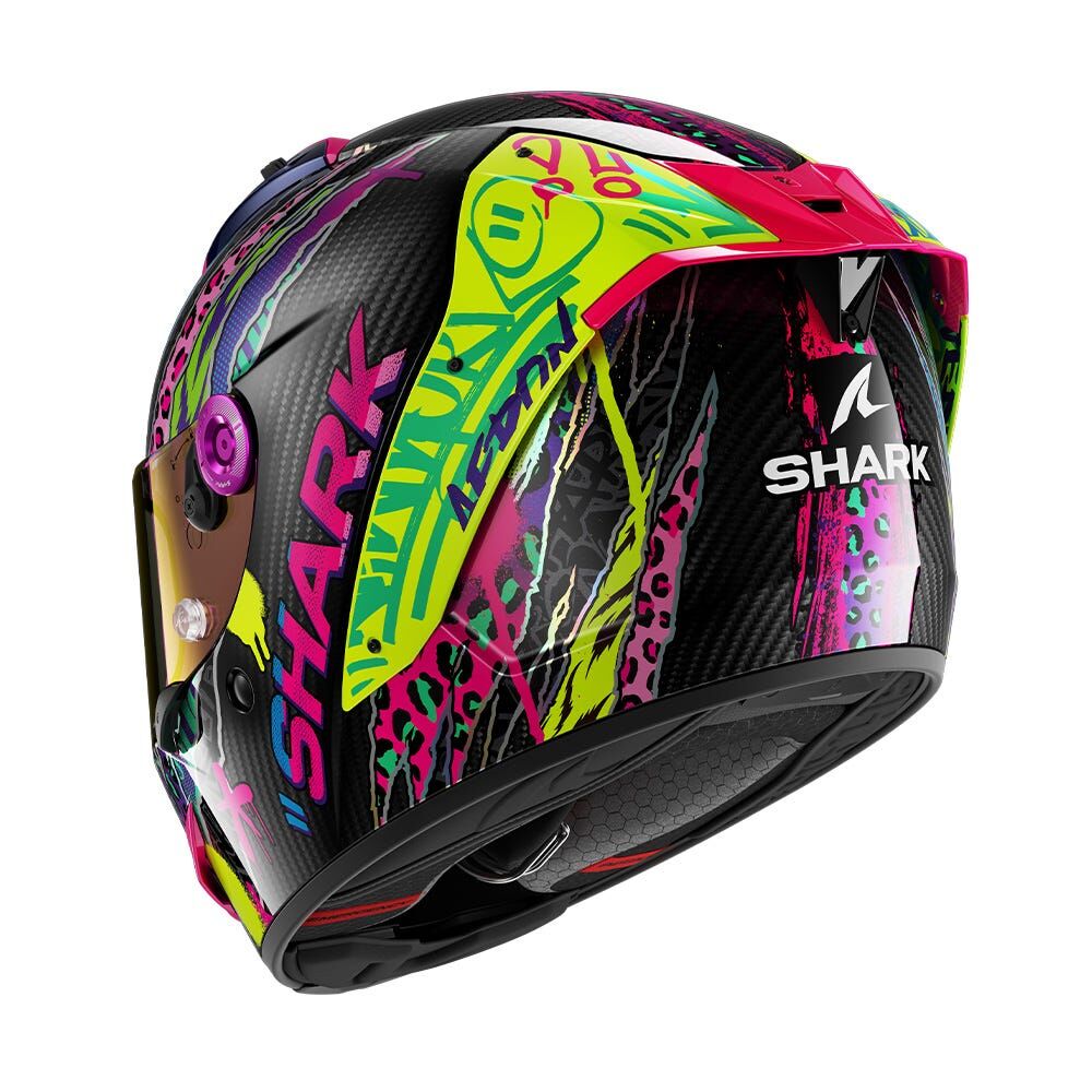 Its COVA CARBON ON VIEW & ARAMID construction, enhanced by a powerful graphic directly inspired by the MotoGP, expresses the excitement of the race. Designed as a tribute to the helmets of the Grand Prix racers, this design draws inspiration from the intensity of the paddocks, the lightning speed in a straight line and the adrenaline of passing by millimetres. Its dynamic lines, intense colours, and sleek graphics extend to the spoiler, asserting a bold style and a resolutely performance-orientated identity.