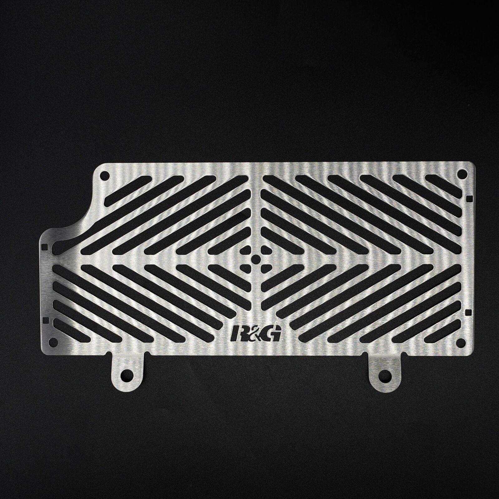 The R&G Stainless Steel Oil Cooler Guard series is a more rugged version of our existing aluminium guard. Constructed from 1mm stainless steel sheet allows the guard to be incredibly strong and impervious to rust – perfect for bikes and riders who may tackle demanding terrains and conditions. The laser-cut grills are designed for maximum airflow to the Oil Cooler so that cooling isn't compromised; the Oil Cooler Guard is as good looking as it is purposeful.This R&G Oil Cooler Guard is suitable oil cooler found on the Kawasaki ZX-10RR/R 2021-.