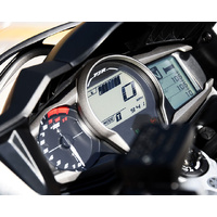 This electronic system uses sensors to detect any rear wheel spin, and as soon as the rear tyre loses traction the Traction Control System instantaneously adjusts the bike's ignition timing, as well as the fuel injection volume and throttle opening to momentarily cut drive, and ensure that traction is maintained.