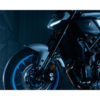 Integrated new handlebar switch assemblies enable operation of the MT-07’s wider range of functions, including smartphone connectivity, navigation and riding modes as well as exploring further menu options. The new turn signals are now self-cancelling and offer ‘three flash’ function for changing lanes. Also new, Emergency Stop Signalling automatically detects emergency braking and applies the indicator lights to automatically notify other road users.