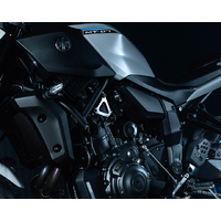 Integrated new handlebar switch assemblies enable operation of the MT-07’s wider range of functions, including smartphone connectivity, navigation and riding modes as well as exploring further menu options. The new turn signals are now self-cancelling and offer ‘three flash’ function for changing lanes. Also new, Emergency Stop Signalling automatically detects emergency braking and applies the indicator lights to automatically notify other road users.