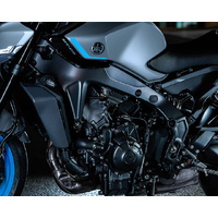 The grin-inducing roar of the MT-09 is one of its most defining characteristics, evoking a sense of pure adrenaline with every twist of the throttle. The MT-09 features specifically designed air-intake ducts which accentuate the high frequency sounds, which are then emphasised, especially at higher speed, by an acoustic amplifier grille on top of the fuel tank, delivering the CP3’s vibrant note directly to you.