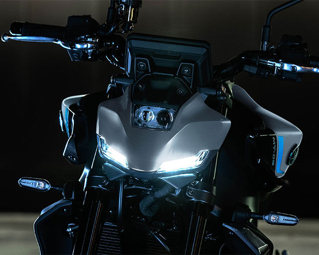 Embodying a pure ‘less is more’ approach, the next generation Hyper Naked styling takes the MT-09 to the next level in aggressive yet minimalist bodywork. The new bi-functional LED headlamp is now enclosed in a cover, creating a more compact and unified relationship with the newly-designed fuel tank, which commands a more engaged, slightly forward-leaning riding position, while maintaining the sharp and edgy aesthetic that is synonymous with the MT name.