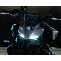 Integrated new handlebar switch assemblies enable operation of the MT-09’s wider range of functions, including smartphone connectivity, navigation and riding modes as well as exploring further menu options. Intuitive new turn signal functions further enhance the riding experience. A soft click of the indicator switch will flash the turn signals three times for use when changing lanes, while a full click makes them flash continuously. The turn signals will also self-cancel once 15 seconds have passed and the bike has travelled for more than 150 meters. New Emergency Stop Signalling (ESS) will also engage the hazard lights when the system detects sudden braking.