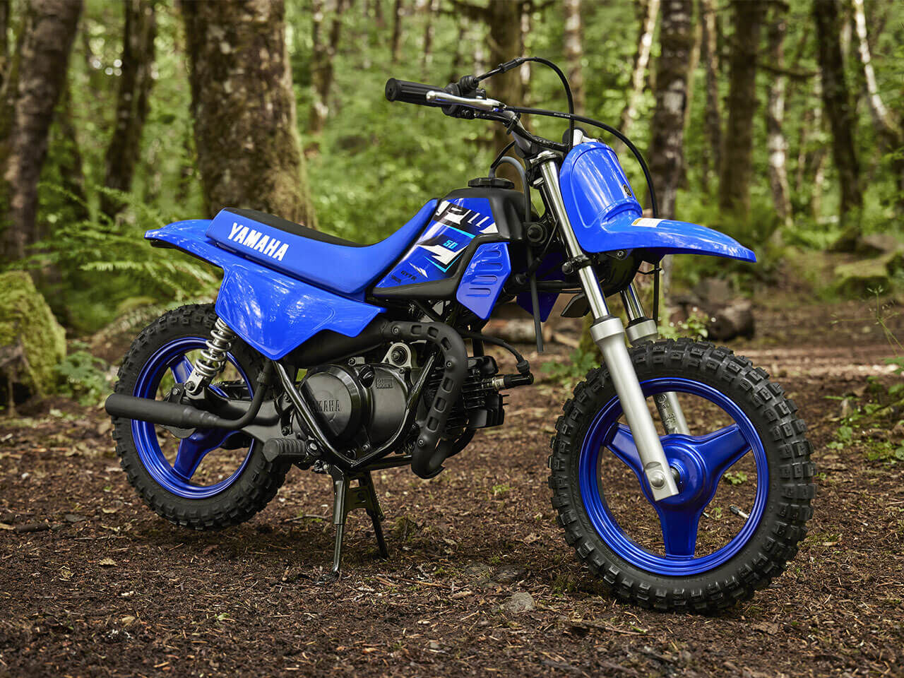 Although it weighs only 41 kg, this is a tough little motorcycle that's designed to deliver many years of fun. Its 3-spoke 10 inch steel wheels are strong and easy to clean - and for plenty of grip, the PW50 runs on chunky 2.5 inch wide tyres.