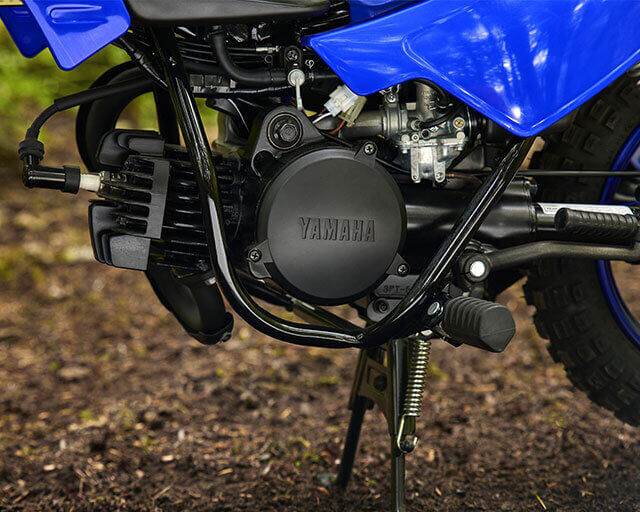 Just like Yamaha's larger-capacity off road bikes, the PW50 is equipped with polypropylene bodywork which combines high strength with low weight. The front and rear fenders and side panels are finished in racing blue which give this leading mini-bike a sporty image.