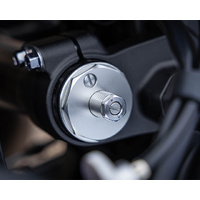 Constructed from high tensile steel pipe, the strength of the main frame material allows for thinner materials to be used – keeping the overall weight of the machine as low as possible. The frame’s downpipes work alongside the aluminium engine guard to protect the sump from severe damage in the event of heavy impact, while the integrated subframe facilitates full luggage options from the Genuine Yamaha Accessories range to be fitted.