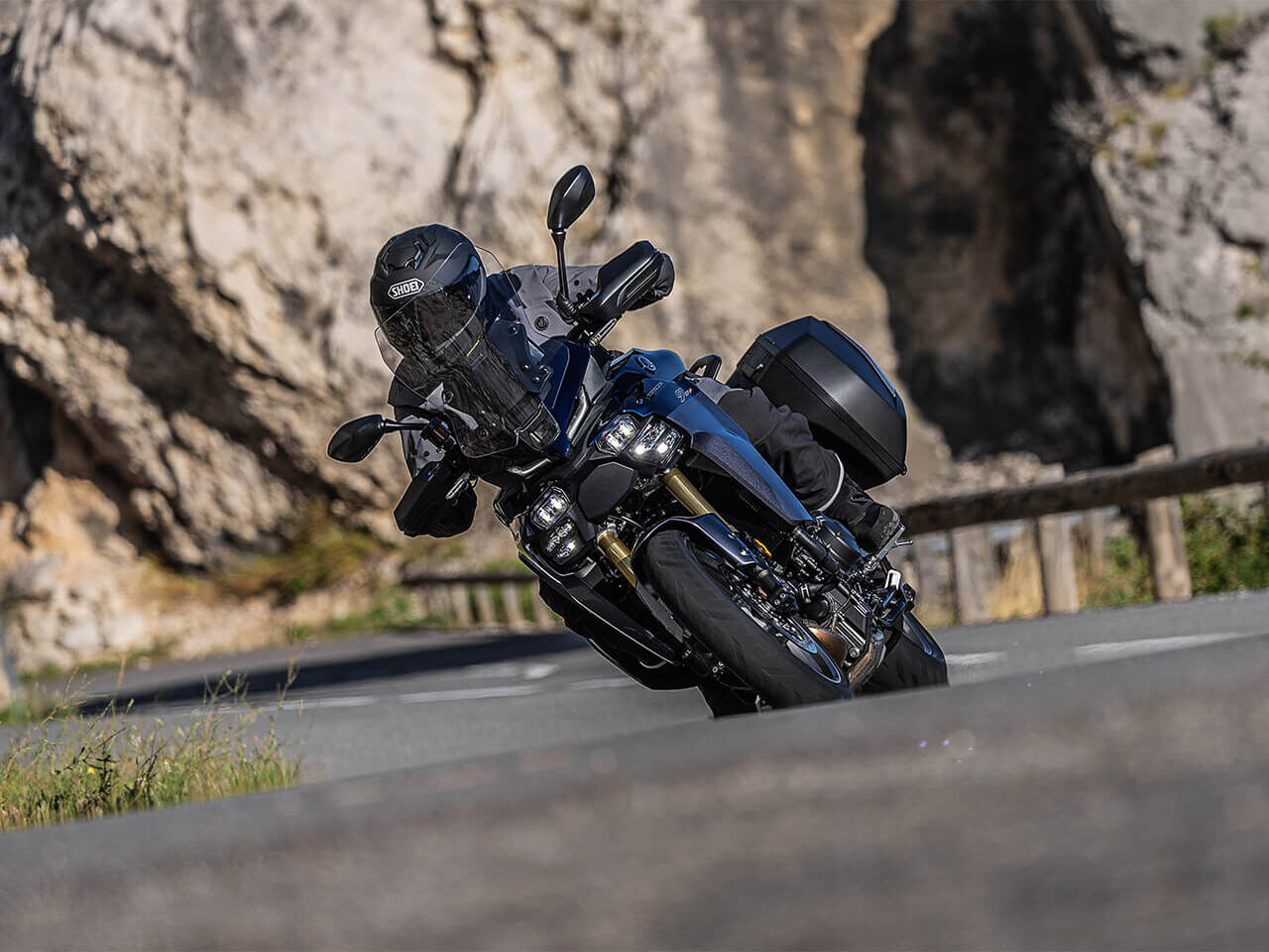 The Tracer 9 GT+ Y-AMT delivers improved wind protection thanks to a redesigned front fairing and windscreen. The new wind tunnel developed arrangement reduces buffeting to ensure both rider and pillion arrive at their destination fresher than ever, while the electronically controlled windscreen now offers 100mm of stepless adjustment to allow the rider to fine tune the aerodynamics to meet their own specific preferences.